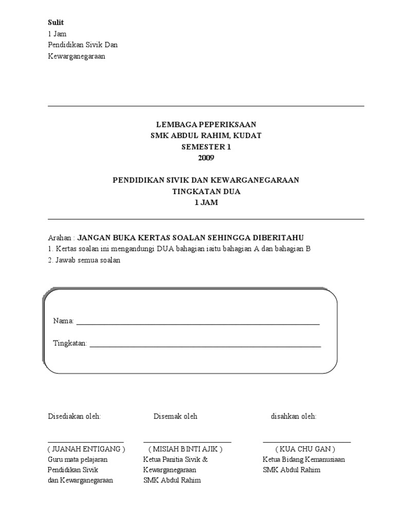 Soalan Peperiksaan Penggal 1 Sivik Pdf